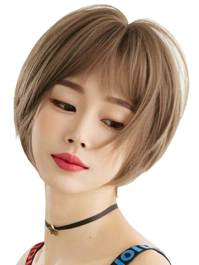 ミルクティーブラウン フルウィッグ ショート 前髪 3D グラデーション ヘアアレンジ 襟足 ボリューム カール ストレート つむじ 耐熱 自然 ボリューム 抜け感 (ミルクティーブラウン)