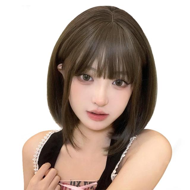 33cm-焦茶 Peacoco ウィッグ ボブ シュート ミディアム 毛量もつむじも自然 絡まりにくい ネット付き ストレート はっつん前髪 自然 女装 レディース カツラ (33cm-焦茶)
