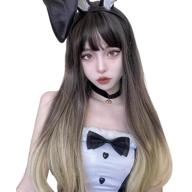 ブラックブラウン&ゴールド BARSDAR ウィッグ ロング ストレート フルウィッグ かつら 自然 ぱっつん 小顔 人気 耐熱 wig 原宿系 ファッション ネット/櫛付き ブラックブラウン&ゴールド