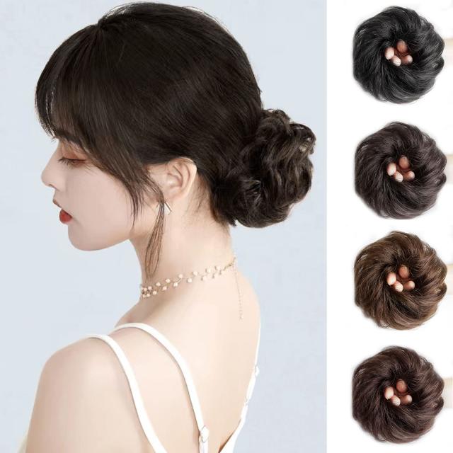 巻き_ブラックブラウン Fuyunohi お団子ウィッグ ウィッグ お団子 ゴム式 シュシュ ポイントウィッグ つけ毛 髪飾り おしゃれ 人気 結婚式 七五三 成人式 卒業式 和装 着物 浴衣 普段使い ウィッグ レディース ボリューム 装着 簡単 自然感(巻き、ブラックブラウン)