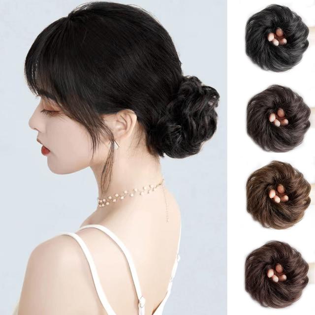 巻き_ブラック Fuyunohi お団子ウィッグ ウィッグ お団子 ゴム式 シュシュ ポイントウィッグ つけ毛 髪飾り おしゃれ 人気 結婚式 七五三 成人式 卒業式 和装 着物 浴衣 普段使い ウィッグ レディース ボリューム 装着 簡単 自然感(巻き、ブラック)
