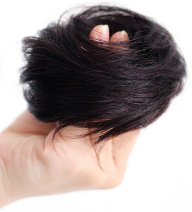 自分の髪の色に合うタイプを選んでから髪をくくるだけで簡単にお団子にボリュームを出します