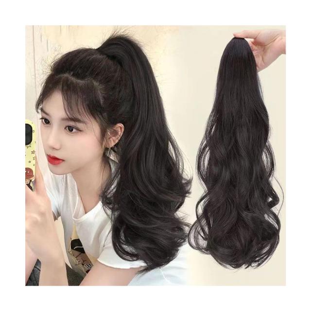 55cm_ダークブラウン happykau ポニーテールウィッグ ロング クリップ 長さ45 55cm 4色展開 ウィッグ ポニーテール エクステ 付け毛 カール ブラック 巻き髪 つけ毛 (55cm, ダークブラウン)