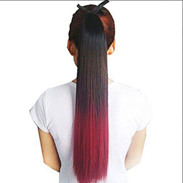 ブラック+ワインレッド LESUN 部分かつら つけ毛 ウィッグ ポイントウィッグ ポニーテールウィッグ ツートン エクステンション ロング ストレート グラデーションカラーエクステ 取り付け簡単 日常 ヘアカラー6色 長さ:55センチ 多カラーバリエーション (ブラック+ワインレッ