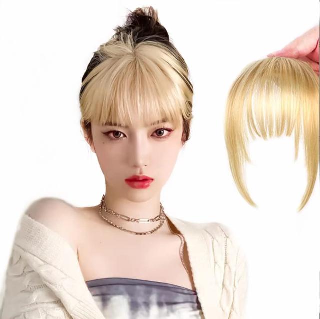 根元がふわふわしていて、超自然な前髪ウィッグ!長さは目と眉毛の間で、小顔効果がある。