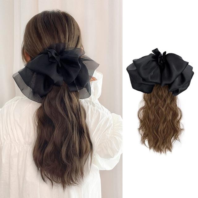 ライトブラウン happykau ポニーテールウィッグ クリップ 蝶結び エクステ ポニーテール ウィッグ つけ毛 つけ髪 付け毛 カール ロング 巻き髪 ポイントウィッグ (ライトブラウン)