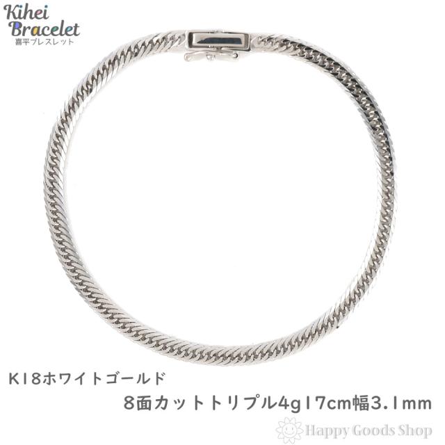 18金 喜平ブレスレット 8面トリプル 4.7g 17cm ホワイトゴールド メンズ レディース チェーン 造幣局検定刻印 キヘイ kihei きへい