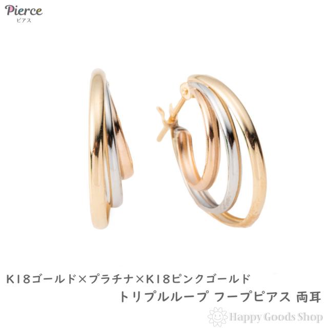 フープピアス K18 プラチナ トリニティ スリーカラー 両耳 レディース トリプルループ ゴールド 18金 18k リング アクセサリー