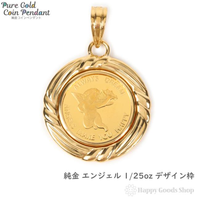 純金 エンジェル 天使 1/25oz 金貨 コイン ペンダントトップ ゴールド デザイン枠 メンズ レディース アクセサリー ヘッド チャーム