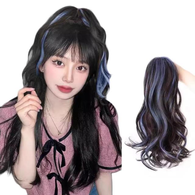 ブラックブラウン&ブルー YXO ポニーテール ウィッグ カール クリップ式 インナーカラー エクステ ポイントウィッグ レディース 自然 ふわふわ 増量用 おしゃれ 元気