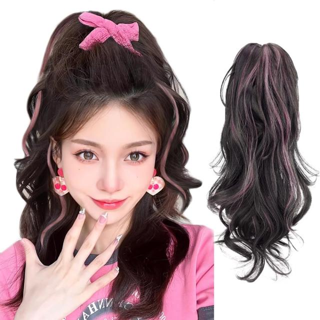 ブラックブラウン&ピンク YXO ポニーテール ウィッグ カール クリップ式 インナーカーラー エクステ ポイントウィッグ レディース 自然 ふわふわ 増量用 おしゃれ 元気