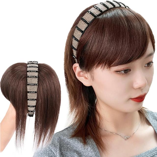 ダークブラウン(ゴールドカチューシャ) QIAOXI 前髪ウィッグ カチューシャ レディース カチューシャ付き エクステ 部分ウィッグ 髪留め ポイントウィッグ 幅広 部分カバー かつら 普段使い向け ヘアアクセサリー ナチュラル 仮装 耐熱 厚い 自然