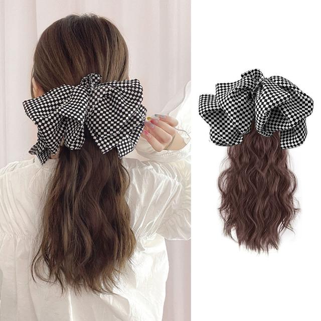 ダークブラウン happykau ポニーテールウィッグ クリップ 蝶結び エクステ ポニーテール ウィッグ つけ毛 つけ髪 付け毛 カール ロング 巻き髪 ポイントウィッグ (ダークブラウン)