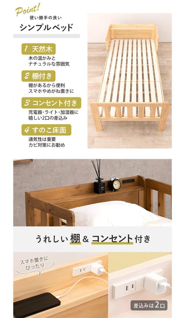 ■商品名:シングルベッド 連結可能 宮棚付き コンセント ベッドガード