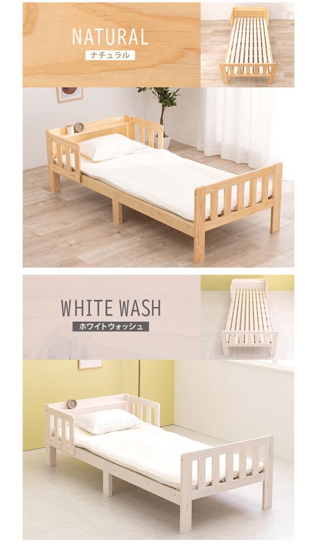 1台だとベッドガード付きの1人用ベッド、複数台を連結すると家族で広々使える大きなベッドに。敷布団が使えるロングサイズで、スマホも置ける宮棚付き。【カラーバリエーション】ライトブラウン(4934257291538/MB-5064S-LBR)ナチュラル(4934257291545/MB-5064S-NA)ホワイトウォッシュ(4934257291552/MB-5064S-WS)