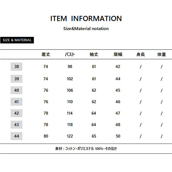 ※基本的に、XL・LL・2Lのサイズはすべて同じサイズです。