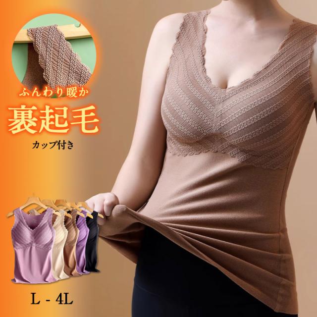 発熱 ブラトップ タンクトップ キャミソール レディース レース 裏起毛 補正下着 秋冬 あったか 発熱 保温 暖かい 寒さ対策 タンクトップ 婦人