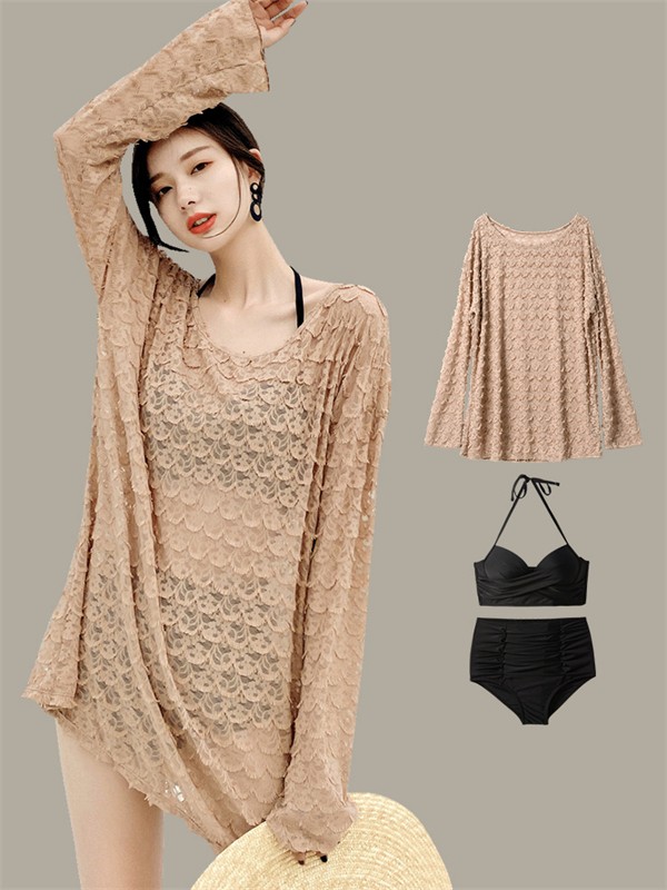 タンキニ 水着 レディース 体型カバー 長袖シャツ 透け感 ラッシュガード ビキニ セパレート オーバーサイズ 20代 30代 40代 カバーアップ 小胸 露出控えめ 大人 オトナ女子 ショートパンツ 温泉 ワイヤー パッド付 海 プール リゾート おしゃれ ママ水着 大きいサイズ