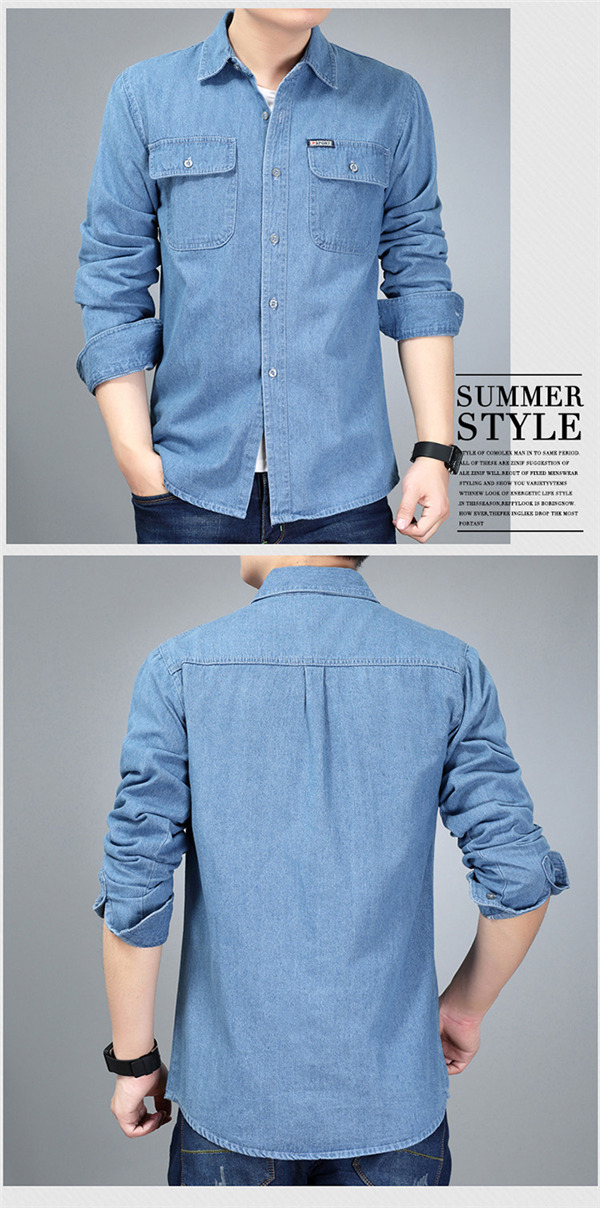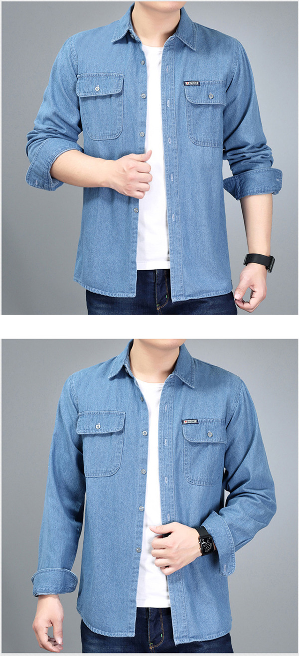 ポイント超超祭 デニムシャツ メンズ 長袖 トップス 無地 カジュアル 柔らかい 通勤 通学 紳士服 スリム ベーシック 前開き 大きめ ギフト おしゃれ 吸汗