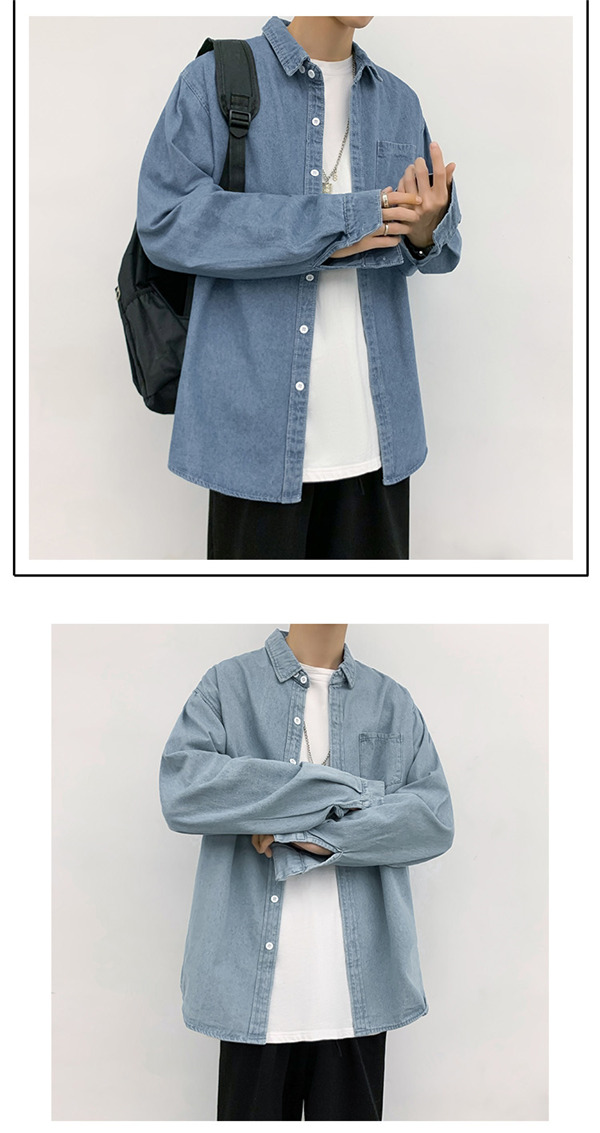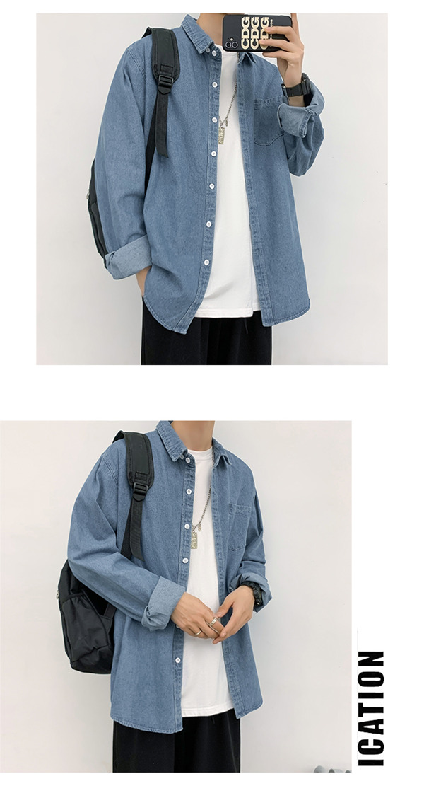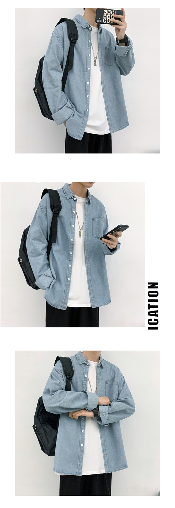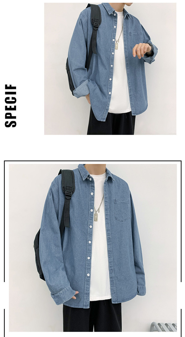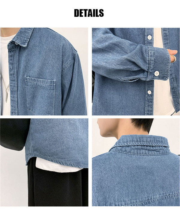 シャツ デニム メンズ 長袖 トップス 前開き 無地 柔らかい 紳士服 かっこいい カジュアル 吸汗速乾 通勤 通学 ギフト スリム オフィス
