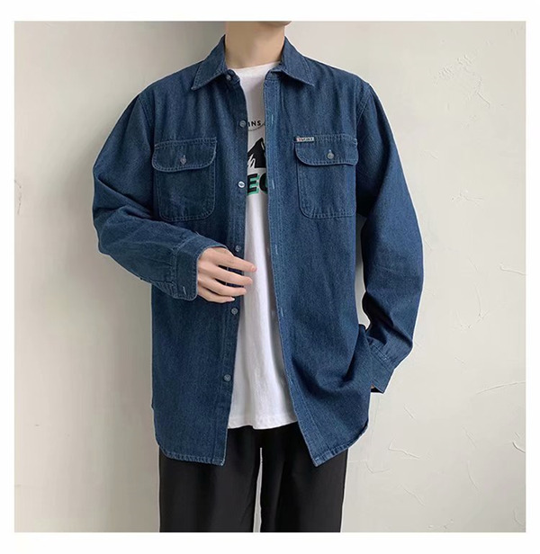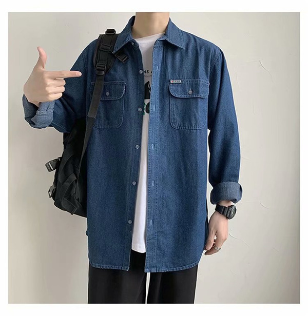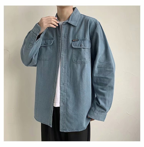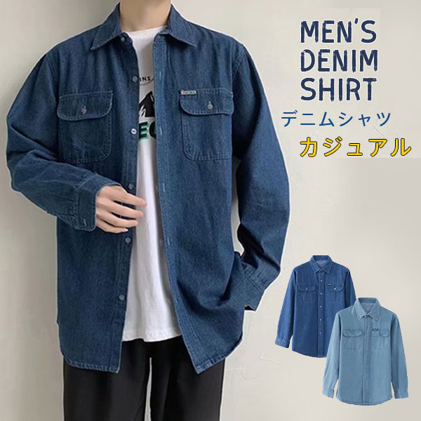 デニムシャツ メンズ 長袖 トップス 無地 カジュアル 柔らかい 通勤 通学 紳士服 スリム ベーシック 前開き 大きめ ギフト おしゃれ 吸汗
