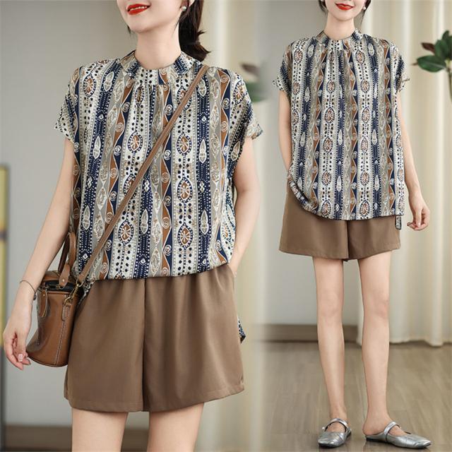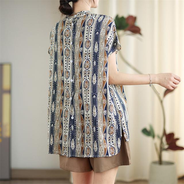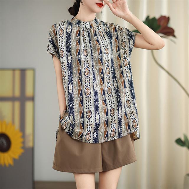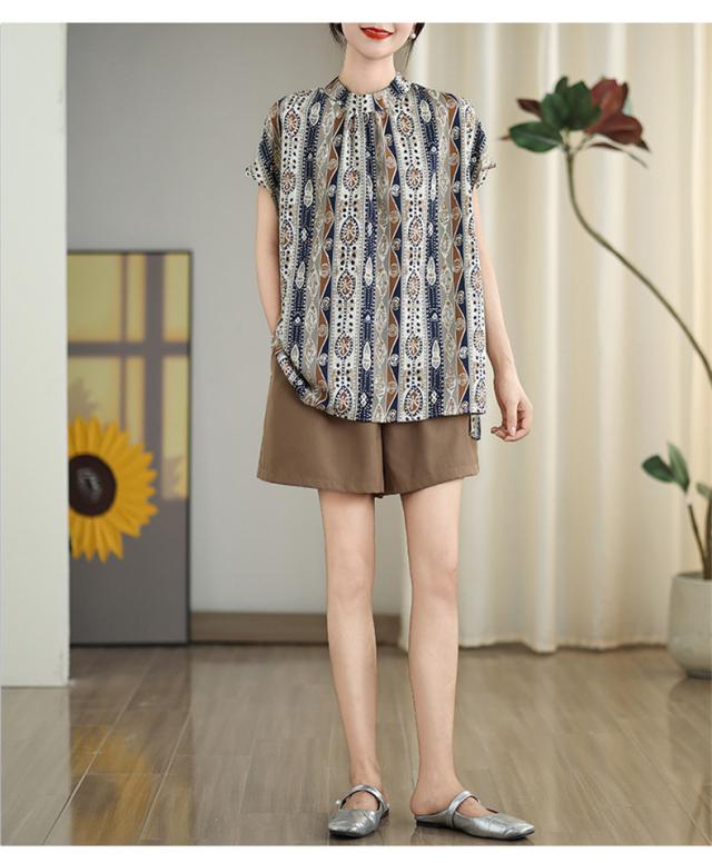 ブラウス レディース トップス 夏シャツ 半袖 ハイネック 大きいサイズ ゆったり 幅広いシーズン着まわしGOOD 今のシーズン大活躍 古着風コーデにも
