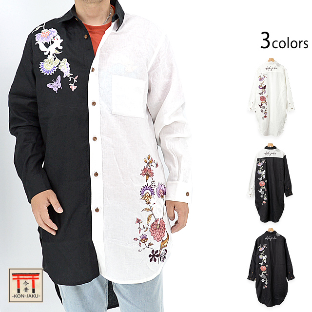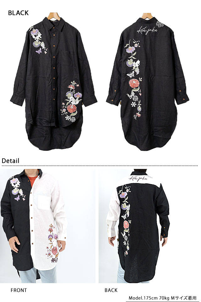 | 「和風ペイズリー」総刺繍ロング丈シャツ◆今昔 KJK-M02813 | ||||||||||||||||||||
