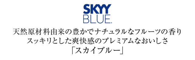 スカイブルーは、アメリカ西海岸サンフランシスコ生まれのプレミアムウオッカ「スカイ ウオッカ」の姉妹ブランドです。さわやかなシトラス(柑橘)風味を効かせたのがスカイブルーの特徴。フルーツ果汁のさっぱりとしたおいしさをギュッととじこめ、まるかじりしたような果実感たっぷりの味わいです。
