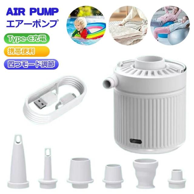 エアーポンプ 充電式 ミニ電動ポンプ 1200mAh電池 3.5kPa高気圧 小型 携帯便利 空気入れ・空気抜く 6種類のノズル付き 浮き輪 プール うきわ インフレーターマット キャンプ ゴムボート