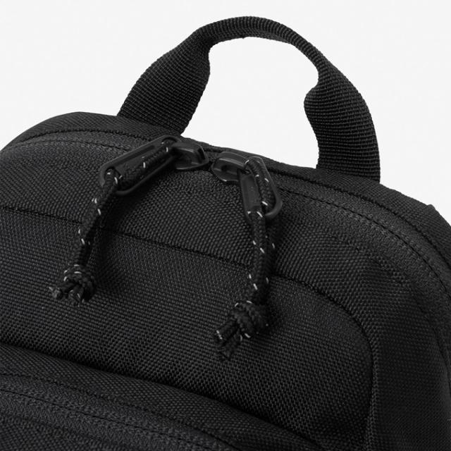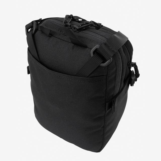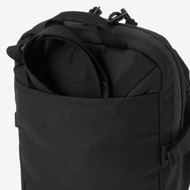 ショルダーベルトを背面ポケットに収納することで、ポーチ単体としても使用することが可能。素材は軽量で高強度の600デニールリサイクルポリエステルを使用した、環境への負荷を抑えるグリーンマテリアル製品です。