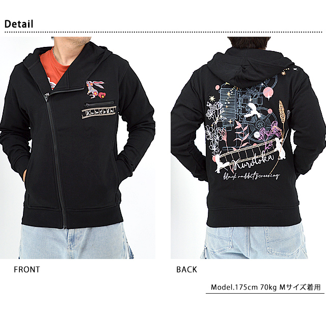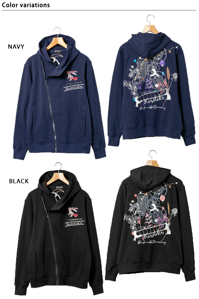 | 黒菟華「黒いうさぎの上映会」総刺繍斜めZIPパーカー◆LIN LIN-M02003 | ||||||||||||||||||||