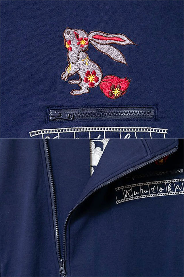 黒菟華 「黒いうさぎの上映会」総刺繍斜めZIPパーカー LIN AL-759074 和柄 和風 兎 刺繍 ユニセックス
