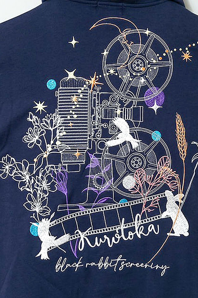 何でもあり、何でもやる新ブランド「LIN」から、黒菟華 「黒いうさぎの上映会」総刺繍斜めZIPパーカー(AL-759074)のご紹介です。 黒い兎がモチーフの「黒菟華(kurotoka)」から、斜めジップのスウェットパーカーが登場しました! 背中に大きく描かれたデザインはアンティークな映写機をモチーフにしています。 ボディーには裏毛タイプのスウェットを採用。 | ||||||||||||||||||||