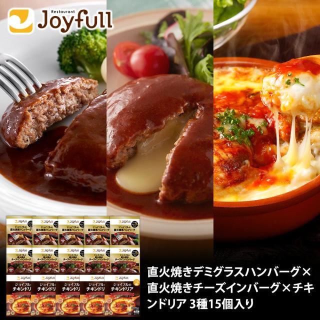ジョイフル 簡単調理 セット 3種 15個 入り( 直火焼き デミグラスハンバーグ × 直火焼き チーズ イン ハンバーグ × チキン ドリア ) 冷凍 セット 冷凍食品 おかず 総菜セット お惣菜セット