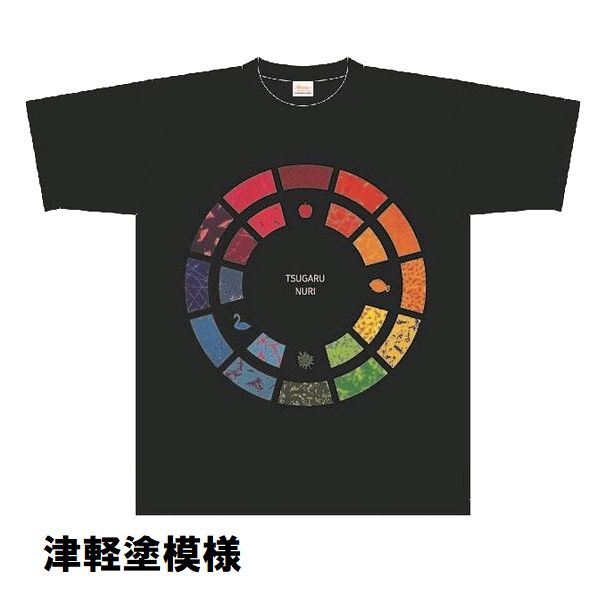青森 弘前 限定 津軽塗 模様 プリント Tシャツ 角模様タイプ 半袖 黒 男女兼用 メンズサイズ 津軽 青森 つがるぬり お土産