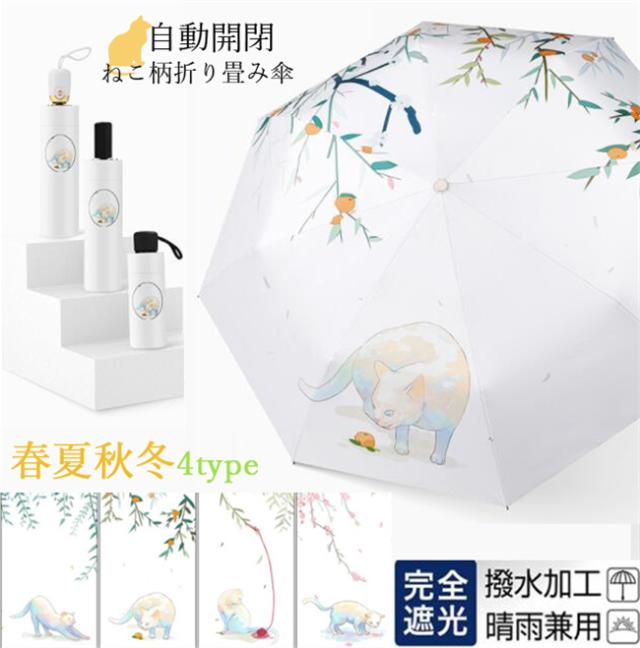 折りたたみ傘 レディース かさ 8本骨 晴雨兼用 自動開閉 UVカット オシャレ 遮光遮熱日傘 レディース 日傘 遮熱効果 紫外線対策 雨傘 猫 猫柄 濡れない 折り畳み 傘 耐風 晴雨傘