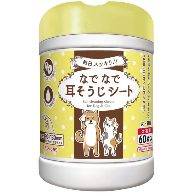 毎日拭くだけで耳周りスッキリ。厚手で指にフィットするサイズなので、やさしくスッキリ拭けます天然由来のナノソイコロイド配合 (洗浄、抗菌、消臭)お肌にやさしいヒアルロン酸配合(保湿)緑茶エキス配合(抗菌、保湿)大容量60枚入、乾燥しにくいボトルタイプさわやかなさくらの香り