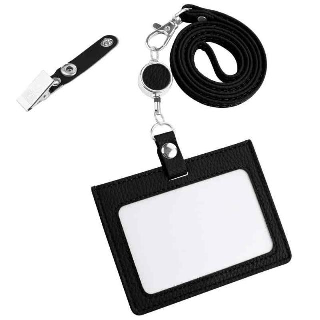 IDカードホルダー 横型 IDカードケース 社員証ケース リール付き パスケース メンズ ネックストラップ クリップストラップ付き ICカード入れ 定期入れ 社員証ホルダー カードケース 首掛け 両面用 伸縮リール式 カード3枚収納 ネームホルダー 社員証 定期入れ 名刺 名札 パスケース 定期ケース (ブラック)