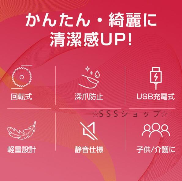 【20%超還元セレクト】電動爪切り 回転式 深爪防止 USB充電式 軽量 爪切り 自動爪切り 爪磨き ベビー爪切り 足巻き爪 お手入れ簡単 安心安全 ネイルケア コンパクト