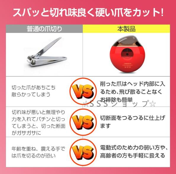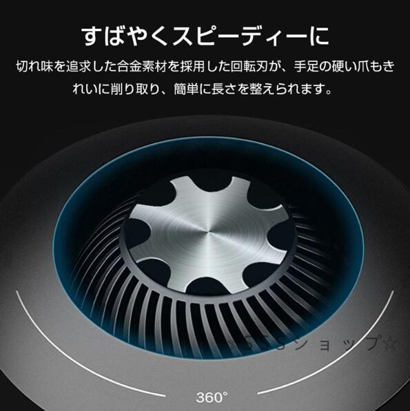 電動爪切り 回転式 深爪防止 USB充電式 軽量 爪切り 自動爪切り 爪磨き ベビー爪切り 足巻き爪 お手入れ簡単 安心安全 ネイルケア コンパクト