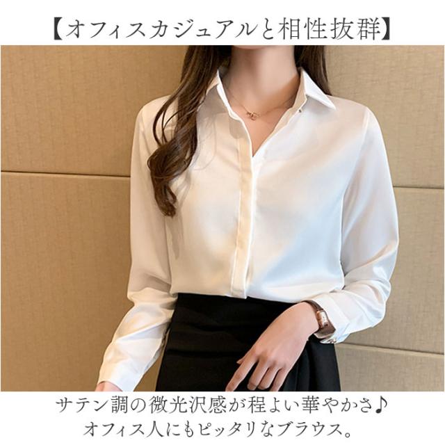 ブラウス 長袖 レディース 通販 レディースブラウス ワイシャツ 長袖ブラウス 長袖シャツ サテンシャツ 柔らかい サテン 襟付き