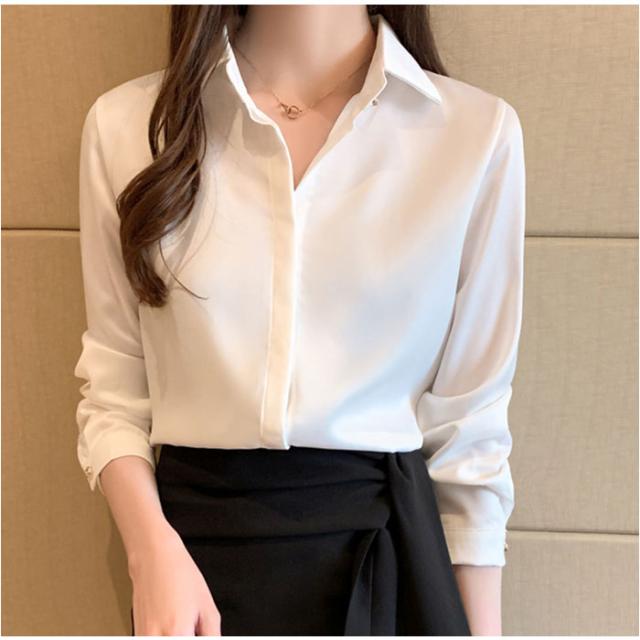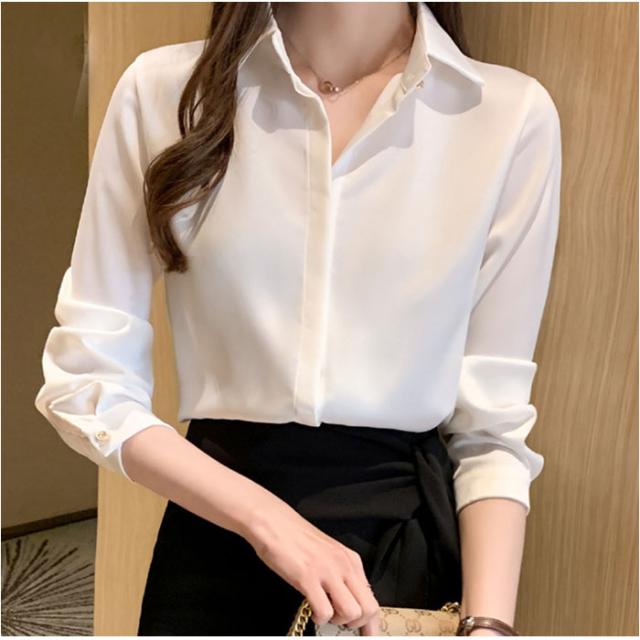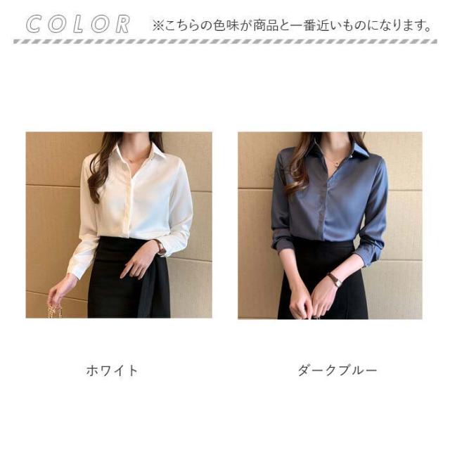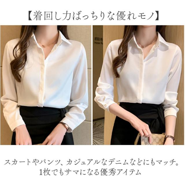 ブラウス 長袖 レディース 通販 レディースブラウス ワイシャツ 長袖ブラウス 長袖シャツ サテンシャツ 柔らかい サテン 襟付き 衿付き 前開き シンプル 無地 大人 上品 きれいめ