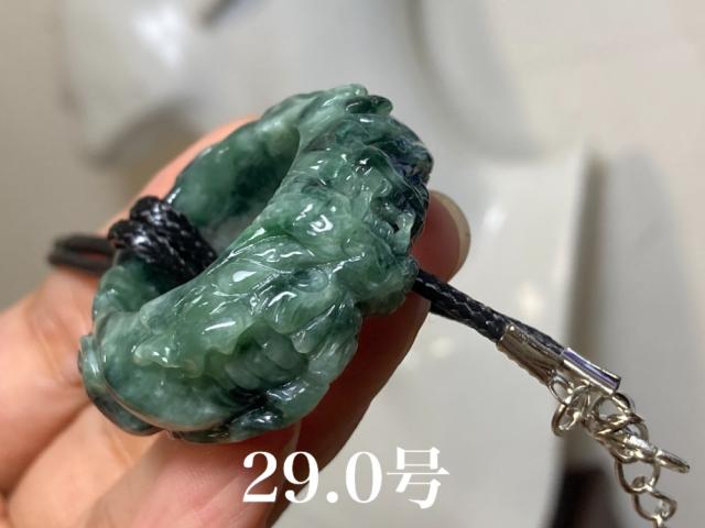 RS7-189 一点物 手彫り 青?護主 平安御守 ネックレス 29.0号 リング ミャンマー産 天然 A貨 本翡翠