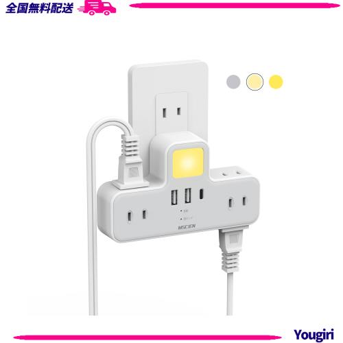 Mscien コンセント 分岐 LEDナイトライト usb コンセント 電源タップ usb付き 1個usb-c 2個usb-a 6個AC口 USB-C コンセントタップ 雷ガー