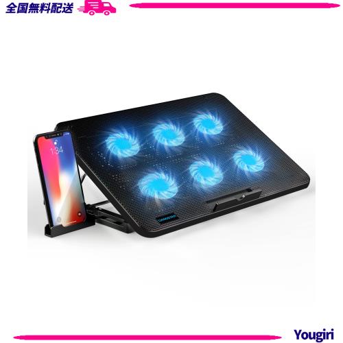 LiANGSTAR ノートパソコン冷却パッド 6つ冷却ファン ノートPCクーラー 7段階高さ 角度調整 風量調節 冷却台 2つUSBポート 静音 スマホン