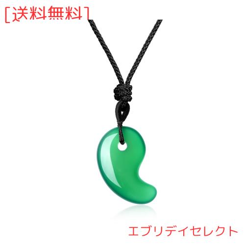 [コアイ] グリーンアゲート 心身健康お守り勾玉 ペンダント/ネックレス 長さ調節可能 メンズ レディース
