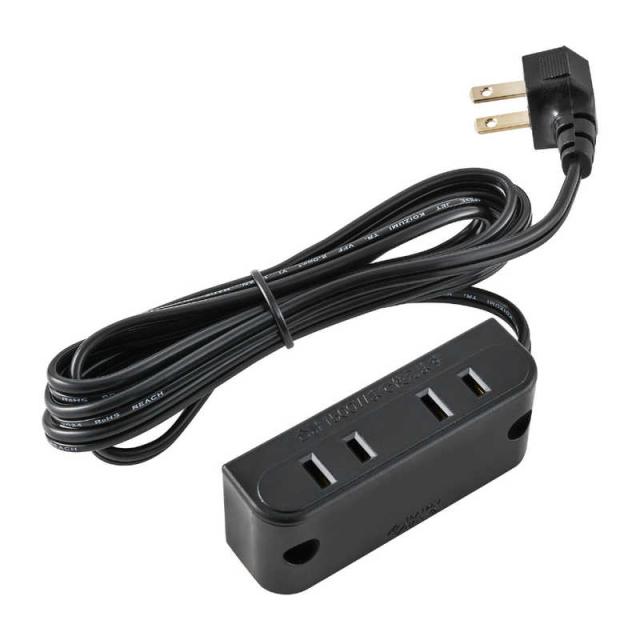 ELPA 家具用コンセント2個口 L型プラグ 2m FO-22-BK