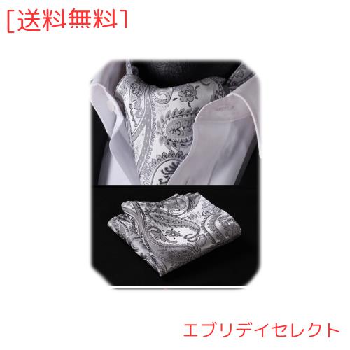 [HISDERN] アスコットタイ メンズ シルク シルバー ライトグレー ネッカチーフ 結婚式 フォーマル スカーフ おしゃれ ペイズリー柄 男性