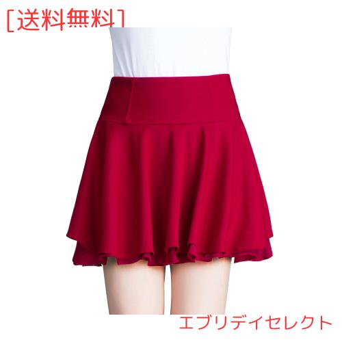 [Sharphon] 赤 シフォン ショートスカート インナーなし Aライン ウエストゴム 短い スカート レディース ストレッチ フレア ゴムスカー