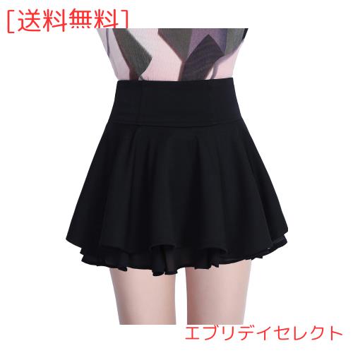 [Sharphon] 黒 シフォン ショートスカート インナーなし Aライン ウエストゴム 短い スカート レディース ストレッチ フレア ゴムスカー